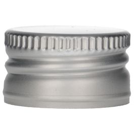 Aluminiumskruelåg med skumindsats til tætning, passer til PP28 halsdele.